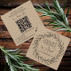 Vignes de couronnes faites main | Carte de visite artisanal Kraft — Caractéristiques des vignes à feuilles formées en une couronne sur l'avant de la carte, ainsi que votre nom d'entreprise et votre adresse de site Web. À l'arrière est un code QR personnalisable avec vos autres détails d'affaires. En bas à droite, vous trouverez une variété d'icônes de médias sociaux : vous pouvez les utiliser à cette fin, les échanger contre des icônes de votre choix ou les supprimer complètement. Toutes les couleurs, le texte et les arrière - plans sont modifiables.