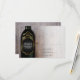 Un arrière - plan rustique s'intègre bien dans un vignoble ou un mariage à thème vinicole. Une bouteille de vin se trouve devant un tonneau de vin rustique patiné avec des raisins à vin, des feuilles et un verre de vin autour de lui sur cette carte de réponse de vignoble rustique. Le étiquette agit comme l'invitation elle-même. Le tonneau à vin se répète au verso avec les noms de la mariée et du marié et la date de l'événement se démarquant. Disponible avec des produits correspondants.
