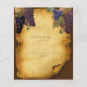 Menu Mariage du vignoble. Ancien arrière - plan de papier avec des bords recouverts et déchirés sur un arrière - plan bordeaux profond. Joli pourpre, et des accents de vigne bleue.