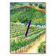 Aquarelle peinte sur les collines verdoyantes et verdoyantes, pleine de vignes, dans un vignoble de campagne. Mots note "Tableau 1" mais peuvent être personnalisés avec vos propres mots et messages. Créez votre propre carte de table unique en son genre en customisant ces cartes de table modèles pour votre mariage, réception ou autre information personnelle sur l'événement.