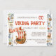 Set sail for a fun Viking adventure with this adorable watercolor-themed birthday invitation!