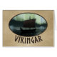 Une image légèrement stylisée d'un longship viking naviguant la nuit sous les aurores boréales là-bas quelques icebergs ; la plupart de l'équipage est endormi. Le texte "VIKINGAR" (Vikings) apparaît également. Il s'agit d'une version estompée ou vintage de l'image originale plus brillante qui est également disponible.