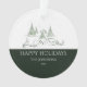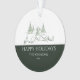 Un décor minimaliste de vacances Snowy Christmas Village avec "Happy Holidays" en blanc sur un arrière - plan vert Cardin. Le nom, l'accueil et l'année peuvent être facilement customisés pour une touche personnelle.