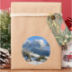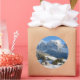 Montage photo souvenir rond du village de St. Magdalena (Père Noël Maddalena) avec son église dans le Villnoesstal au Tyrol du Sud, Italie, dans la neige en hiver.