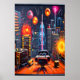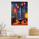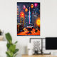Ville, toit et feu d'artifice| AI Art Poster