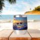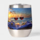 Vins sur la plage au coucher du soleil. Une belle cave à vin pour garder votre vin cool pour l'extérieur. Un joli cadeau de vin.