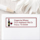 Des étiquettes de adresse à thème vinicole en blanc avec un cadre bordeaux autour du bord et des graphismes d'une bouteille de vin et d'un verre. Personnalisez le texte couleur vin pour répondre à vos besoins.