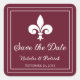 Mariage élégant et simple Enregistrer le Date Stickers avec une fleur de lis contre un arrière - plan de vin. Ce design est un choix unique pour annoncer un mariage moderne. Facile à customiser avec vos détails mariages. Cliquez sur "Customiser" pour trouver d'autres options de personnalisation.