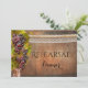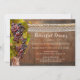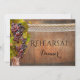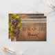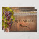 Un dîner romantique de répétition rustique invitation avec des vignes avec raisins, dentelle et corde sur un arrière - plan en bois de tonneau de vin.