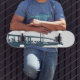 Skateboard avec le pont qui relie San Pedro à Long Beach, l'illustration graphique du pont Vincent Thomas de San Pedro. Ce graphique coloré de ce célèbre pont est un objet original que vous ne trouverez nulle part ailleurs.