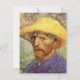 Autoportrait avec Casquette de paille par Vincent van Gogh est un post impressionnisme d'art vintage portrait de la vie quotidienne avec l'artiste. Van Gogh a créé de nombreux autoportraits au cours de sa vie, il était un auto-portraitiste prolifique, qui s'est peint trente-sept fois entre 1886 et 1889. Dans tous ces autoportraits on est frappé que le regard du peintre nous est rarement dirigé vers nous; même quand il est un regard fixe, il semble chercher ailleurs. Ces peintures varient en intensité et en couleur et certaines dépeignent l'artiste avec la barbe, certaines sans barbe, d'autres avec des bandages; représentant l'épisode dans lequel il a coupé une de ses oreilles. À propos de l'artiste : Vincent Willem van Gogh était un peintre post impressionniste dont le travail était le plus remarquable pour sa beauté rugueuse, son honnêteté émotionnelle et sa couleur audacieuse.
