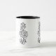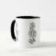 Cette tasse est décorée d'une belle illustration sur une clef recouverte de vignes et de fleurs.