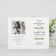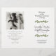 Vignes vertes sur blanc, programme de mariage plié modèle avec photo du couple sur le dos. Customisez quatre pages blanches de texte noir avec des vignes vertes sur la première page et le bas à l'intérieur. Une grande esperluette porte le nom complet de la mariée et du marié. Inclure un message personnel des jeunes mariés sous leur photo.