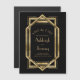 Cette élégante carte magnétique Save the Date d'inspiration vintage présente du texte doré sur un arrière - plan noir, encadré par un design art déco vintage géométrique.