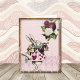 L'illustration de John Tenniel du lapin blanc dans le vintage Alice au pays des merveilles dans le conte de conte de contes. Il porte des vêtements de carte cardiaque, un col turquoise, souffle une trompette et tient un parchemin avec un bijou vert. Roses floraux bordeaux et blancs en haut à droite. Arrière - plan de coeur rose, dentelle rose parties scintillant au fond et bordure d'or antique.