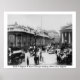 Affiche vintage de Londres Angleterre avec scène de rue 1904 à Bank of England & Royal Exchange bâtiments, calèches & trams.