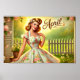 Celebrate the beauty of spring with this charming Vintage April Pin-Up Poster, featuring a classic retro-inspired illustration of a glamorous 1950s-style beauty standing in a sunny garden scene. Dressed in a soft pastel floral dress and framed by blooming flowers, butterflies, and a bright spring landscape, this artwork captures the cheerful warmth and nostalgic elegance of vintage calendar pin-up art.