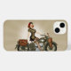 Une moto vintage armée / militaire style pinup iPhone 14 Plus coque avec "Sgt. Davidson" par l'artiste pin-up Sean Earley