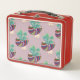 Features original illustration artwork printed on a red vintage-style lunch box.