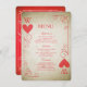 Un menu mariage unique conçu pour ressembler à une carte de jeu vintage : l'as des coeurs. Polices romantiques et élégantes et vos initiales.
