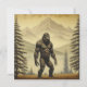 Vintage art aérien avec Bigfoot ou Sasquatch dans les grands pins avec un arrière - plan de montagne.