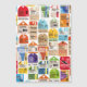 Vintage travel tickets pattern of various famous international locations.