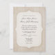 Ce design se compose d'un arrière - plan rayé crème poussiéreux et d'un cadre crème découpé simple et élégant placé sur un ruban crème foncé. Le texte alterne entre les polices Garamond classiques et les polices de mariage de script, avec un script supplémentaire qui s'épanouit pour le style entre la date et l'emplacement du mariage. Le design a été donné une impression vieillotte et désespérée pour compléter le design vintage. Un monogramme personnalisé initial dans son propre cadre plus petit cravate le dos de la carte d'invitation dans la conception globale. Ces invitations sont classiques mais pas trop formelles, dégageant un charme vintage et suranné avec une douceur et un style contemporain.