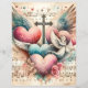 Papier recto verso présentant les coeurs et les fleurs de la Saint-Valentin avec des symboles religieux sur la feuille de musique vintage pour découper et coller pour vous aider dans vos projets de fabrication de papier. Parfait pour tous les types de papercraft, du scrapbooking à la journalisation des déchets.
