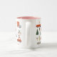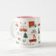 Enjoy your favorite coffee during Christmas with this holiday mug featuring colorful illustrations of red pick up trucks, mail truck, vintage bus, vintage trailer, Christmas trees, gifts and more.