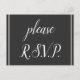 Cette conception traditionnelle de carte postale RSVP comporte le message "Please R.S.V.P." sur le devant. Il comporte également un formulaire RSVP personnalisable au verso, ainsi qu'une adresse personnalisable à laquelle les cartes RSVP complétées seraient envoyées par la poste. Les cartes RSVP comme celle-ci peuvent être utilisées pour savoir qui assistera à un baby shower, à une fête d'anniversaire, à une fête de remise de diplômes ou à un autre événement.