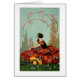 Illustration vintage de Tito Corbella dans son célèbre style art déco. Il y a une jeune femme assise dans l'herbe entourée de fleurs sauvages blancs. Elle a enlevé son casquette d'été en paille qui est sur le sol à côté d'elle. Elle porte une robe avec une jupe pleine à plusieurs niveaux en rouge avec garniture noire et un corsage noir avec manches courtes. Il y a des images à motifs noir et blanc qui décorent les jupes de la robe. L'arrière - plan derrière elle est vert pastel et il y a trois tourbillons art déco courbés simulant des branches aux fleurs rose pastel. L'artiste, Tito Corbella (1885-1966), est né à Pontremoli, Italie et est mort à Rome, Italie. Il signe son oeuvre comme "T. Corbella" et était plus célèbre pour son style art déco italien. Son amour pour les belles femmes, la mode et le glamour est évident dans les plus de 300 images qu'il a peintes qui étaient souvent utilisées sur les cartes postales. Cette carte est vide à l'intérieur pour votre propre message.