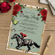 Host the ultimate "Run for the Roses" with this elegant vintage-style Kentucky Derby invitation. Featuring a classic mint green and cream palette, gold art deco borders, and vibrant red roses. Perfect for a sophisticated race day viewing party with mint juleps, fancy hats, and southern charm