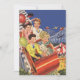 Image vintage pour enfants avec garçons et filles sur un dessous de verre à rouleaux pour s'amuser au parc d'attractions. Les enfants sourient en tenant des ballons et même le chien de compagnie de la famille profite de la balade !
