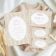 This baby predictions and advice card features soft pink roses and delicate greenery in a timeless vintage stripe design. The muted sage green background adds a calm, romantic touch to your baby shower activities.