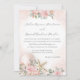 Tropical étoiles de mer et dollar de sable orné de roses floraux et de ruban, invitation mariage vintage romantique à la plage fleurie dans des tons doux rose et naturel.