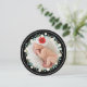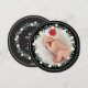 Vintage sur le thème avec des éléments de fleurs dessinés à la main en ivoire et bleu turquoise, cette belle carte ronde envoie des voeux de Noël avec une photo encadrée de fleurs d'hiver entourant la photo de votre famille. Au verso, customisez votre message et vos informations familiales.