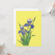 Illustration vintage design floral avec fleurs de jardin en iris violet sur un arrière - plan jaune vif. Grand design pour Pâques ou pour célébrer une belle journée de printemps.
