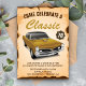 Invitation vos invités avec cet invitation de fête d'anniversaire vintage avec une belle voiture vintage et typographie rétro contre un arrière - plan parchemin. Ajoutez simplement les détails de votre événement sur ce modèle facile à utiliser pour en faire une invitation unique. Retournez la carte pour révéler une texture rustique en bois de grange au dos de la carte.