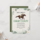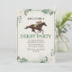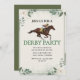 Celebrate race day with this classic watercolor jockey invitation. Featuring a dynamic racing horse and elegant green floral accents, it's perfect for Kentucky Derby-style garden parties and viewing events. Easily customize the text for your 'Derby Chic' celebration."