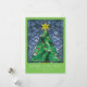 Ces cartes de voeux de Noël à plat de 5 po x 7 po, lumineuses et colorées, sont dotées d'une fenêtre en verre verni à l'aquarelle faite à la main d'un arbre de Noël vert avec une étoile dorée et des ornements rouges encadrés dans les tons bleus sur un arrière - plan vert perroquet. Le dos a le message modifiable, "Vous souhaiter la paix, l'amour et la joie cette saison des fêtes."