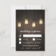 Vintage Rustic Lights Chic Wedding Cartes RSVP - présente des lumières industrielles ou vintages pendantes au-dessus d'un arrière - plan en bois de grange. Voir la collection correspondante trouvée sur cette page.