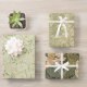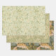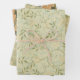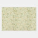 Les trois feuilles de papier d'emballage sont des motifs de papier peint Morris, tous dans le domaine public : "Jasmine" de William Morris (1834 - 1896), de 1872, "Foliage" de John Henry Dearle (1859 - 1932), de 1899, et "Acanot " William Morris, à partir du c. 1875. Le premier est fleuri de jasmin blanc avec des feuilles, sur le ciel bleu clair, les autres n'ont que des feuilles. Le deuxième, "Foliage", a différents feuilles dans différentes nuances de vert, le troisième a spirale vert, gris et brun acanthus feuilles.