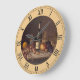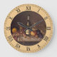Cette horloge murale présente une peinture vintage à vie morte aux riches couleurs automnales, avec des fruits et du vin récoltés, par l'artiste Carducius Plantagenet (C.P.) Ream (1838-1917)