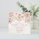 A vintage style invitation for your spring wedding with elegant blush pink roses, spring pastel greenery and rose gold touches with modern handwritten style text.