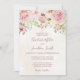 A vintage floral invitation for your spring wedding with elegant blush pink watercolor flowers with pastel greenery and modern handwritten style text and rose gold details.