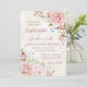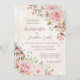A vintage floral style invitation for your spring or summer wedding with delicate blush pink roses and flowers with rose gold details and pastel greenery with modern handwritten style text.