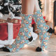 Entrez dans la nostalgie des vacances avec ces chaussettes de motif de Noël bleu vintage rétro Père Noël. Dotées d'un design intemporel du Père Noël et d'un arrière - plan bleu, ces chaussettes apportent une touche festive avec une touche classique. Idéal pour des journées d'hiver, des fêtes de fin d'année ou comme cadeau de Noël unique pour les proches.