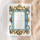 Vintage Rococo Frame Blue Gold Wedding Menu