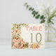 Vintage tableau romantique de la carte postale numéro de table mariage rose qui comprend un bouquet de fleurs roses anglaises en rose, pêche et corail avec feuille vert. Cette décoration florale d'inspiration romantique et élégante, inspirée d'une nature élégante, s'inspire d'une peinture d'art vintage et apporte une touche de romance et d'élégance anglaise. C'est un modèle personnalisable pour un mariage de printemps ou d'été.