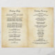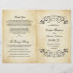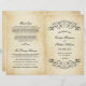 Des tourbillons et des fioritures décoratifs noirs encadrent cette élégante feuille de mariage de cérémonie de typographie vintage. L'arrière - plan d'ivoire rustique est imprimé avec une texture de papier parchemin vieilli. Personnalisez le texte personnalisé pour votre fête de mariage, informations de cérémonie, et message de remerciement. Remarque : ces programmes de papier poids texte arrivent à plat et nécessitent un pliage pour être assemblés.